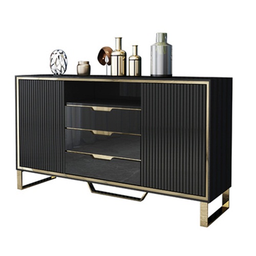 3、備餐柜左右兩邊及上部抽屜和柜門(mén)結(jié)合的封閉式空間搭配中間可上下調(diào)節(jié)的酒格設(shè)計(jì)別出心裁,增大儲(chǔ)物空間的同時(shí)更方便您陳列各式美酒;四個(gè)支撐腳設(shè)計(jì),使備餐柜結(jié)構(gòu)更加穩(wěn)固。