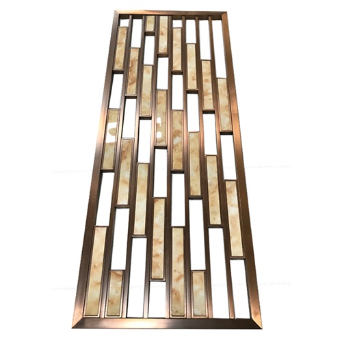 會所新中式玫瑰金鏤空花格屏風造型中式花格造型居多,它主要由不銹鋼空心管經(jīng)氬弧焊接,打磨,拉絲,拋光和電鍍制成。線條簡單,但表達了深遠的意境,簡單的格子被用來傳達優(yōu)雅的魅力。沉淀數(shù)千年歷史的東方生活美學在當今時代并沒有逐漸消失。然而,憑借其簡單而輕巧的設計而又不失去其內(nèi)涵,它在歷史的腳步中站穩(wěn)了腳跟。到目前為止,新型的中國不銹鋼格子屏風仍然散發(fā)出永不落伍的魅力。新型中式不銹鋼屏風是用不銹鋼原料制成的。薄鍍層工藝不會掩蓋原始的不銹鋼金屬感,隱隱約約的金屬光澤以及現(xiàn)代有機板,它是現(xiàn)代科學技術進步和新型建筑材料的重要體現(xiàn)。
