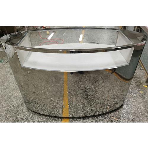 片尺寸價(jià)格說明定做服務(wù)。該款珠寶展示柜定做的尺寸為1400*550*950mm,整體框架為鏡面不銹鋼經(jīng)激光切割、刨槽折彎、無縫焊接和拋光打磨等多道手工加工而成。