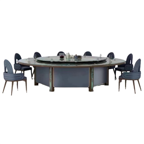 這款酒店豪華20人大理石電動(dòng)餐桌大圓桌是舉辦盛大宴會(huì)、會(huì)議或派對(duì)的理想選擇。這款餐桌采用天然大理石臺(tái)面,高雅、耐用、易于清潔。臺(tái)面由實(shí)木底座支撐,堅(jiān)固穩(wěn)定。餐桌還配有電動(dòng)旋轉(zhuǎn)托盤,可以通過(guò)遙控器或開(kāi)關(guān)控制,方便高效地上菜。