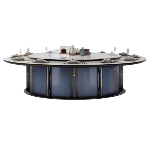 酒店會所時(shí)尚輕奢大理石電動(dòng)餐桌大圓桌圖