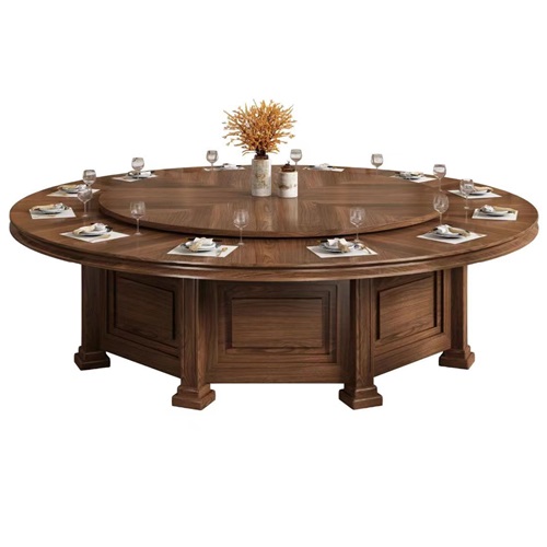 酒店宴會(huì)新中式實(shí)木電動(dòng)餐桌飯店20人位電動(dòng)餐桌圖