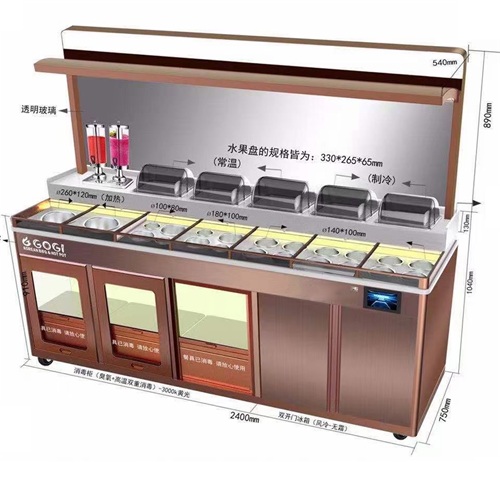 以滑蓋保鮮、風冷保鮮、高溫+臭氧消毒功能,解決了醬料在常溫下開放式存放、碗碟露天存放等食安隱患問題;運用強大的智能操控系統(tǒng),讓調料區(qū)管理更高效;支持多種功能、風格定制,打造餐企專屬料臺。