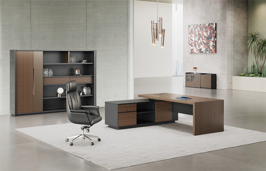 明哲系列辦公家具,采用直紋胡桃和星空灰實(shí)色漆元素,高檔實(shí)木質(zhì)感飾面,深邃飽滿(mǎn),紋理清晰,內(nèi)蘊(yùn)深厚。搭配簡(jiǎn)約端正的造型設(shè)計(jì),臺(tái)腳的斜切裝置,還有產(chǎn)品的布局變化,錯(cuò)落有致,承前啟后,展現(xiàn)極致簡(jiǎn)潔和視覺(jué)效果的完美詮釋。低調(diào)又不失時(shí)尚,穩(wěn)重又不失靈動(dòng),既營(yíng)造現(xiàn)代時(shí)尚的情緒,還給當(dāng)今辦公環(huán)境注入明亮、輕松的舒適感。