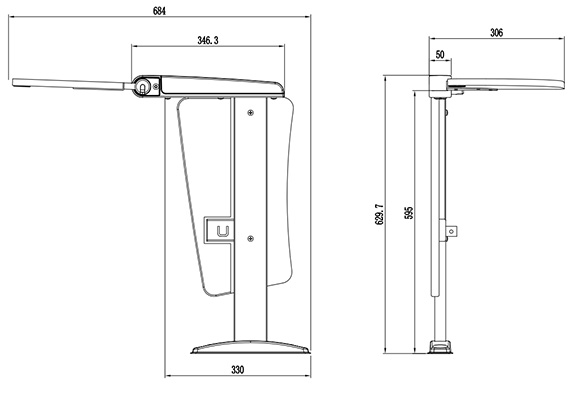 寫字板采用鋁合金翻轉(zhuǎn)機(jī)構(gòu),扶手蓋為PP一體注塑成型,需提供站腳小樣一套。
