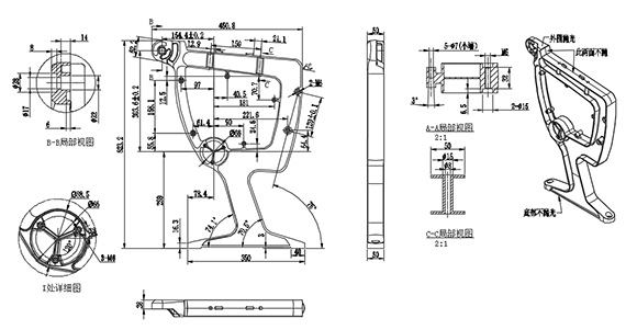 5.座椅扶手為鋁合金模具高溫一次性壓鑄成型,陰極電泳(黑)后表面再精拋光,重量2.9KG。