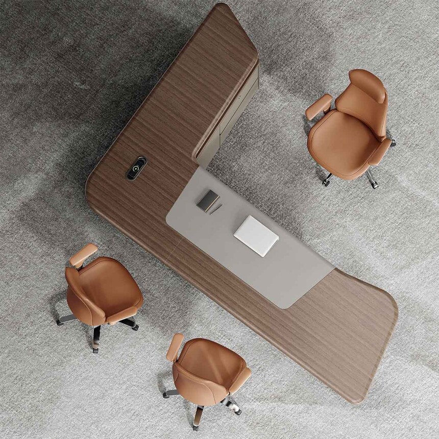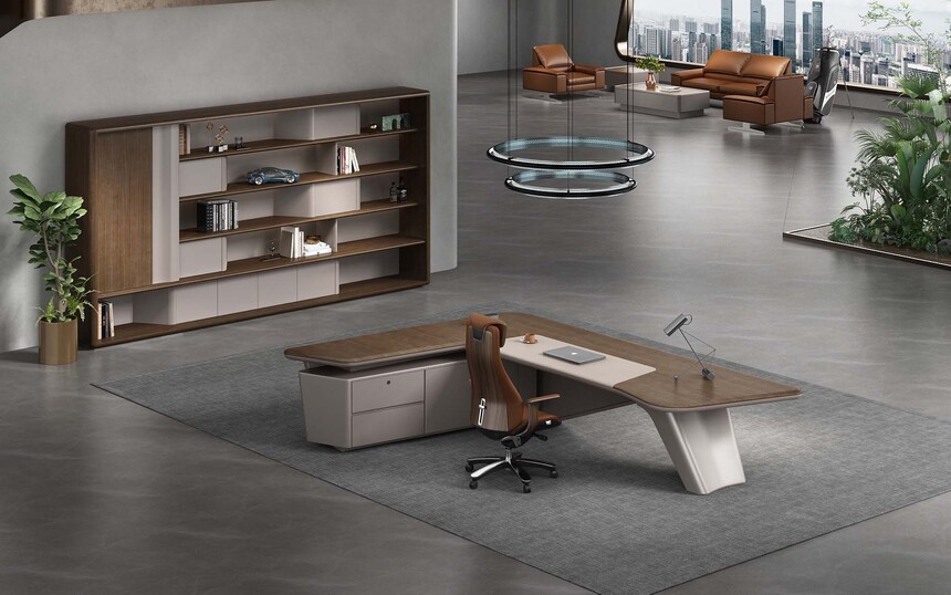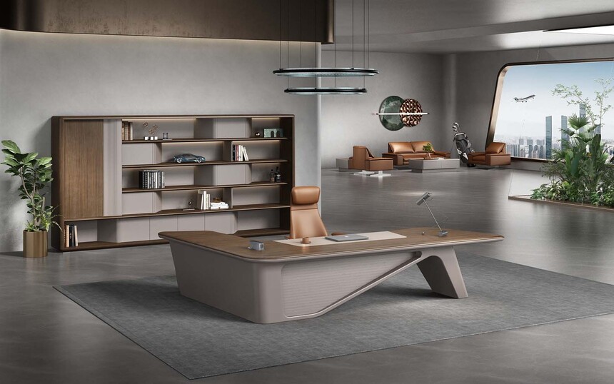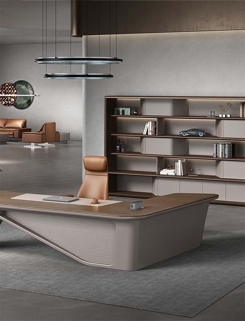 慕尚系列簡潔的設計演繹最本質的意式輕奢美學,設計線條流暢清晰。簡約而不失時尚,功能性與高顏值都得以兼顧。臺面以”超大L形組合“的設計理念打破傳統,將工作區(qū)完美劃分,臺腳以異形玻璃鋼設計,使外觀更加精致。展示使用者理智成熟的氣質,萬物兼容的氣度,打造現代時尚的高效商務辦公空間。
