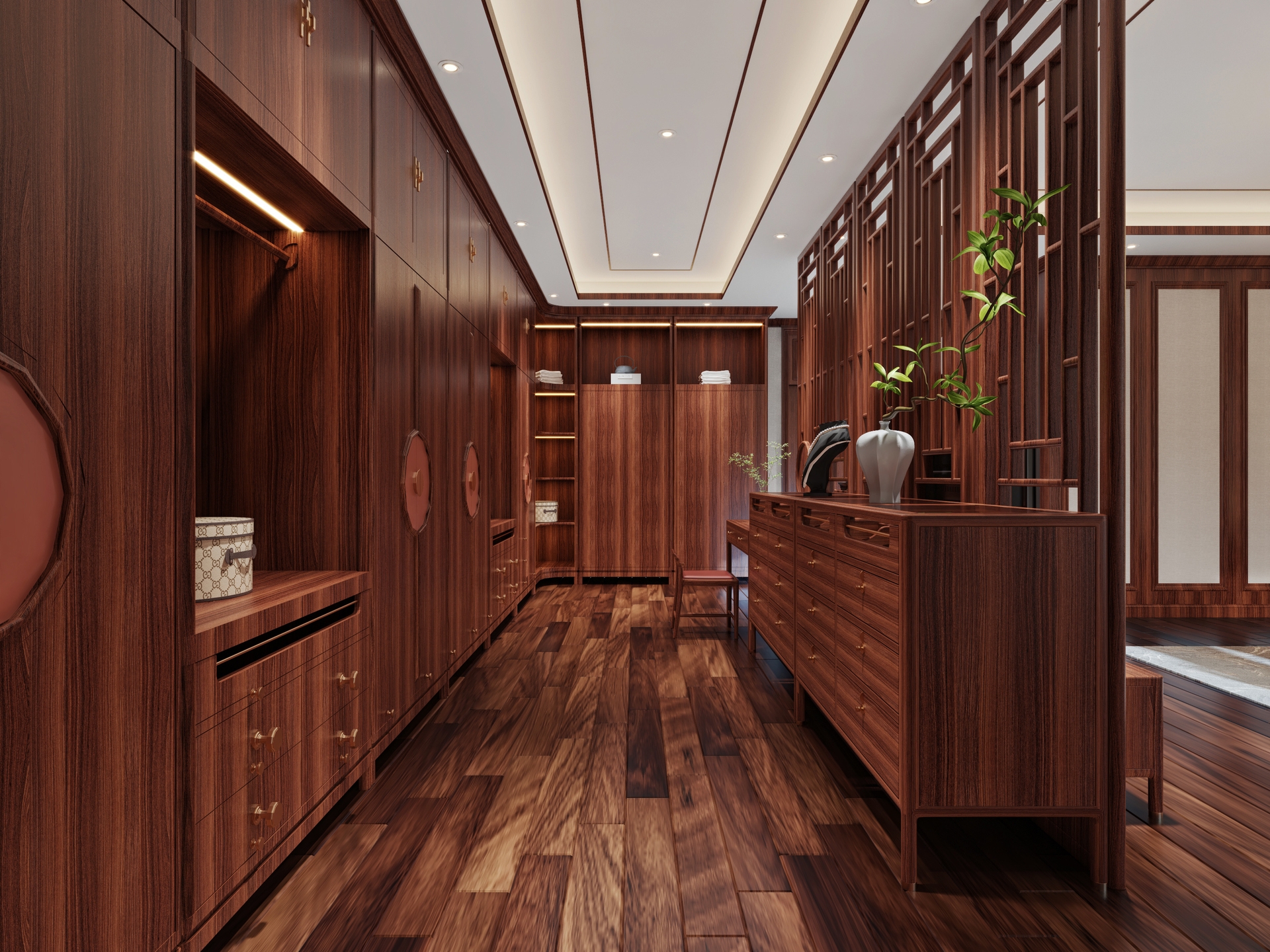 此外,庭院與書房是中式別墅的獨特空間,傳統(tǒng)的圈椅、博古架、花幾等家具與綠植、假山相得益彰,形成一幅優(yōu)美的生活畫卷。整體而言,新中式家具不僅傳承了傳統(tǒng)文化,還完美契合了現(xiàn)代人的生活需求,使中式別墅煥發(fā)出獨特的藝術(shù)魅力與生活品質(zhì)。