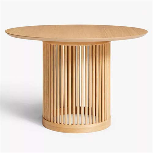餐廳家具廠家為您展示湘菜館中餐廳新中式簡(jiǎn)樸實(shí)木餐桌圖片展示\價(jià)格說(shuō)明\定做服務(wù)。這款湘菜館中餐廳新中式簡(jiǎn)樸實(shí)木餐桌,采用實(shí)心橡木和橡木貼面制作了這款圓形餐桌,具有令人放心的堅(jiān)固和耐磨飾面。餐桌底座由主軸桿制成,使桌子具有觸覺(jué)邊緣并增加了光感。此外,保護(hù)漆涂層突出了木材的自然色彩和色調(diào)。